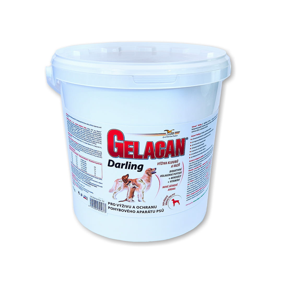 GELACAN® DARLING je revoluční doplněk stravy, který optimálně podporuje zdraví a pohyblivost kostí a kloubů vašeho domácího mazlíčka. Tento inovativní výrobek obsahuje nejkvalitnější formu kolagenu - kolagenní peptidy CHP (kolagenní hydrolyzát peptidů), které komplexně působí na výživu a regeneraci kloubních chrupavek, šlach, vazů a kostí. Tyto peptidy navíc snižují negativní účinky předchozí nedostatečné výživy tkání nebo poškození kloubů, čímž zabraňují dalšímu úbytku chrupavky, zlepšují pohyblivost a zmírňují bolest.