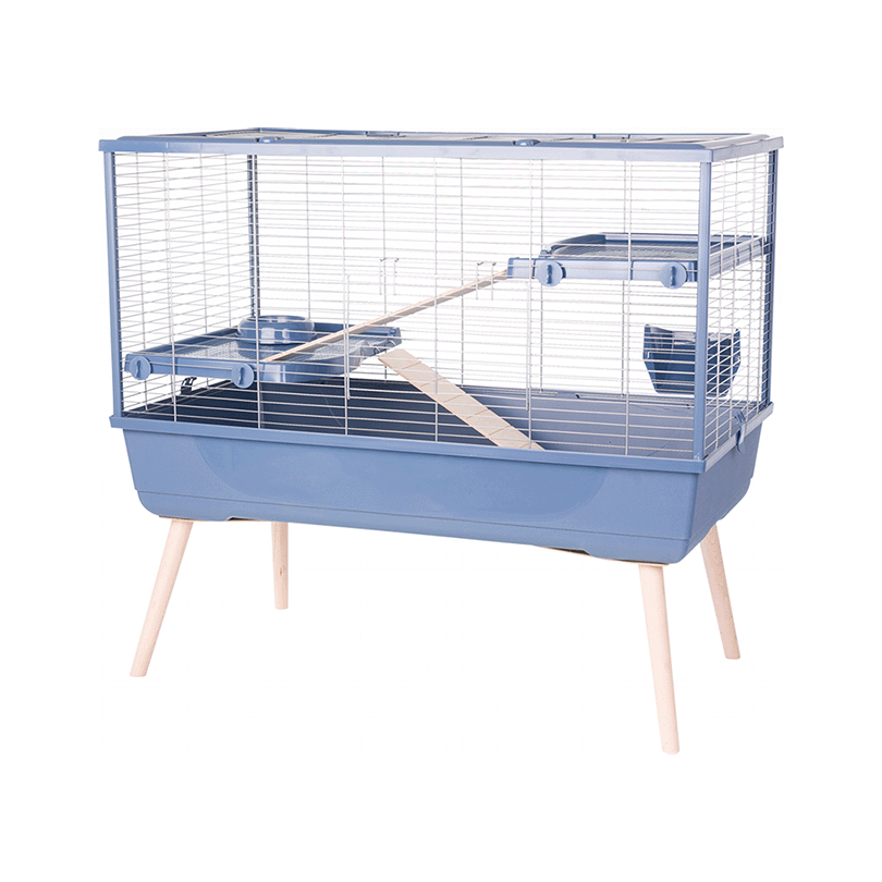Estetický design: Klec NEOLIFE 100 má klasický a jednoduchý design, který dokonale zapadne do každého interiéru. Je k dispozici ve třech různých barevných provedeních: modré, šedé a zelené, takže si můžete vybrat tu správnou variantu pro váš pokoj.