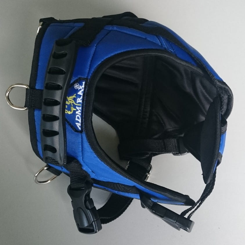 Podpůrné zařízení pro psa po amputaci hrudní končetiny. Může mít jeden otvor na vybrané straně (bez pahýlu celkové amputace) nebo dva otvory (pahýl vlevo). Vše vyrobeno z pevné síťoviny s podpůrnými prvky.