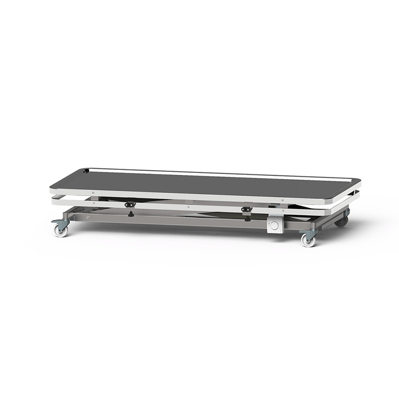 8. Mobilita a nosnost: Stůl je usazen na stabilním nůžkovém rámu, který zajišťuje stabilitu. Základna je mobilní, což usnadňuje přemisťování stolu po zdravotnickém zařízení. Stůl získal působivou nosnost 150 kg, což umožňuje provádět různé lékařské zákroky.