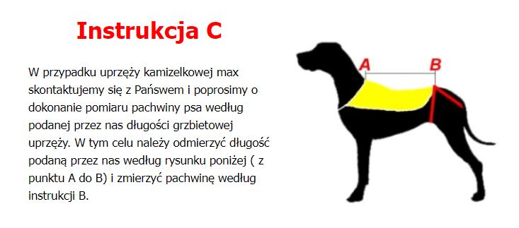 Chcete-li si objednat postroj s popruhem, změřte svého psa podleníže uvedenýchpokynů "B" a "C":