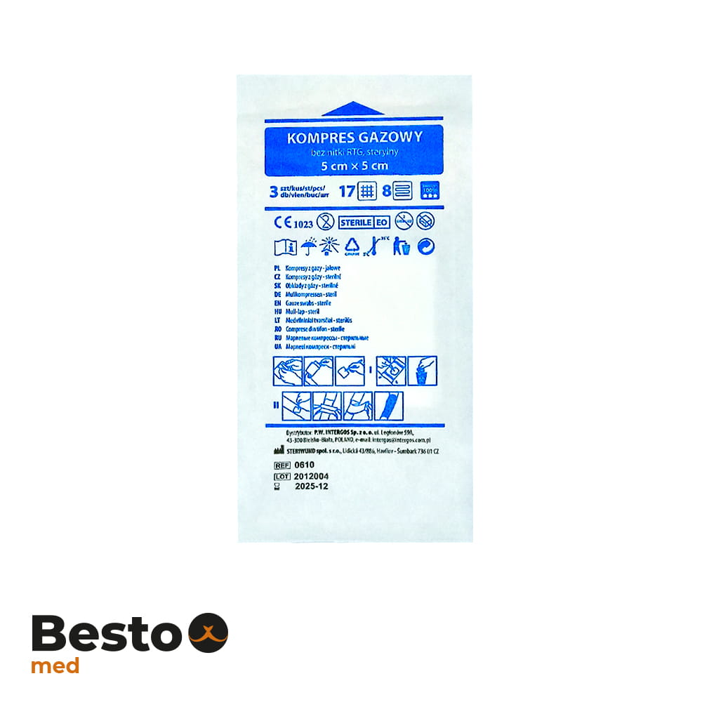 Sterilní plynový kompres.