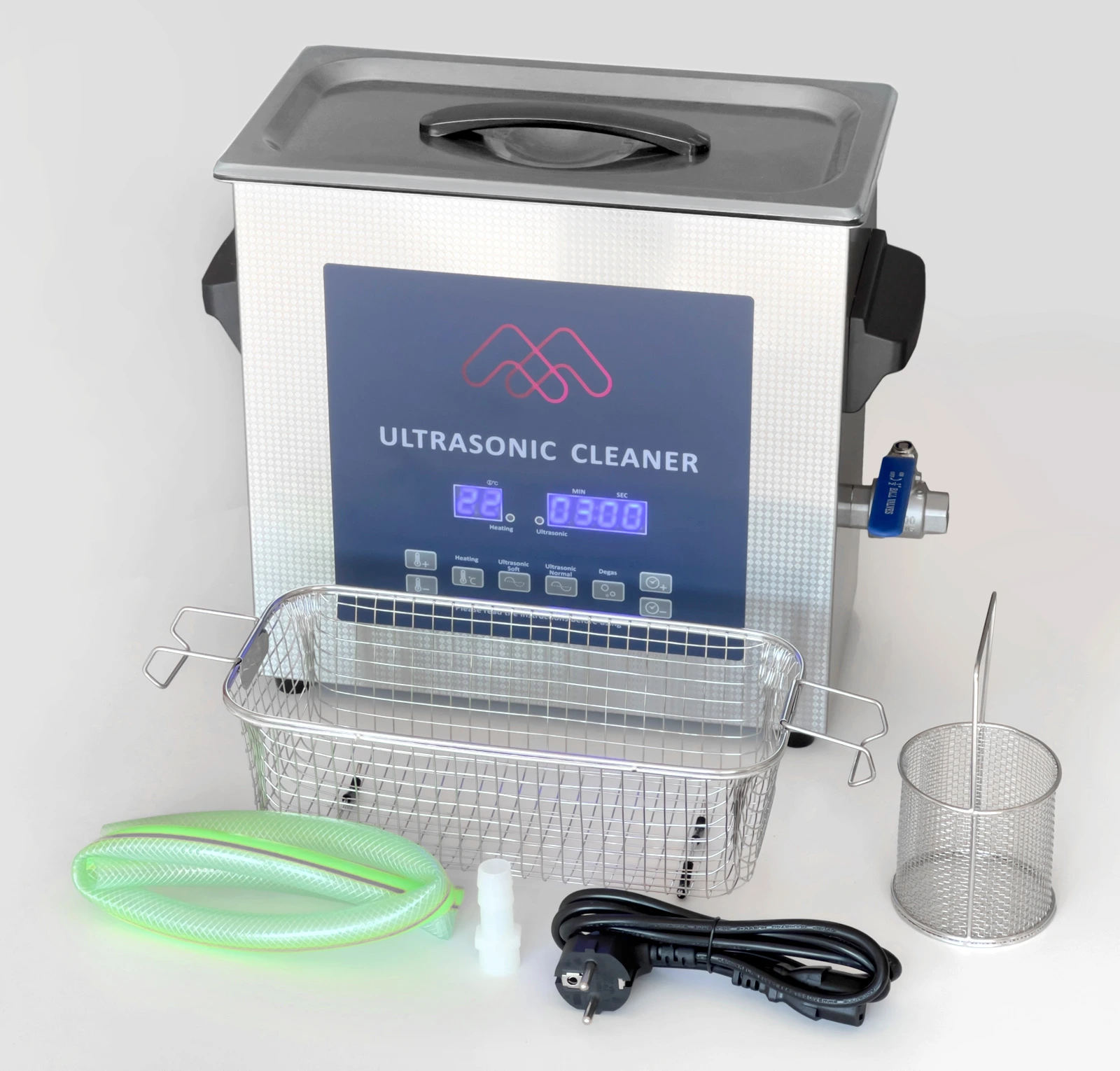 Technické specifikace, jako je frekvence 40 kHz, ultrazvukový výkon 120 W, výkon topného tělesa 220 W a nastavení teploty 50, 55, 60 ℃, potvrzují vysokou kvalitu a účinnost myčky. Odolný vypouštěcí ventil a robustní plastový kryt zvyšují odolnost a bezpečnost přístroje.
