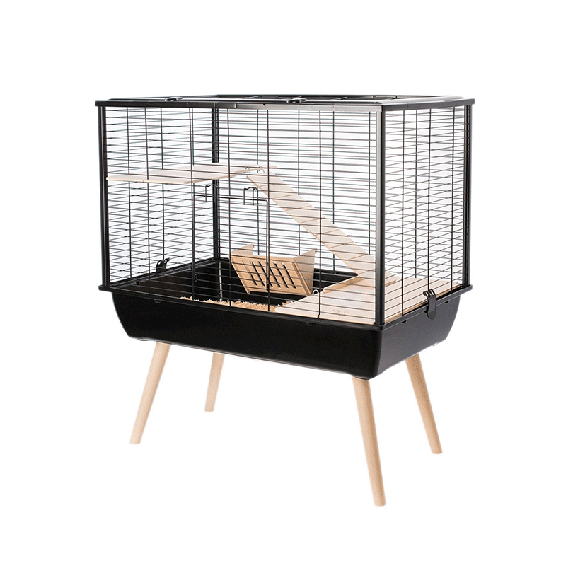 Součástí balení je vše, co potřebujete, abyste svému hlodavému společníkovi poskytli výjimečné životní podmínky. Jedna výškově nastavitelná podlaha, dřevěný domeček se střechou tvořící první patro, dva žebříky a zásobník na krmivo, to vše zaručuje pohodlí a zábavu pro vašeho mazlíčka. Klec má navíc 4 nohy, které umožňují její vyvýšení pro lepší pozorování prostředí zvířetem.