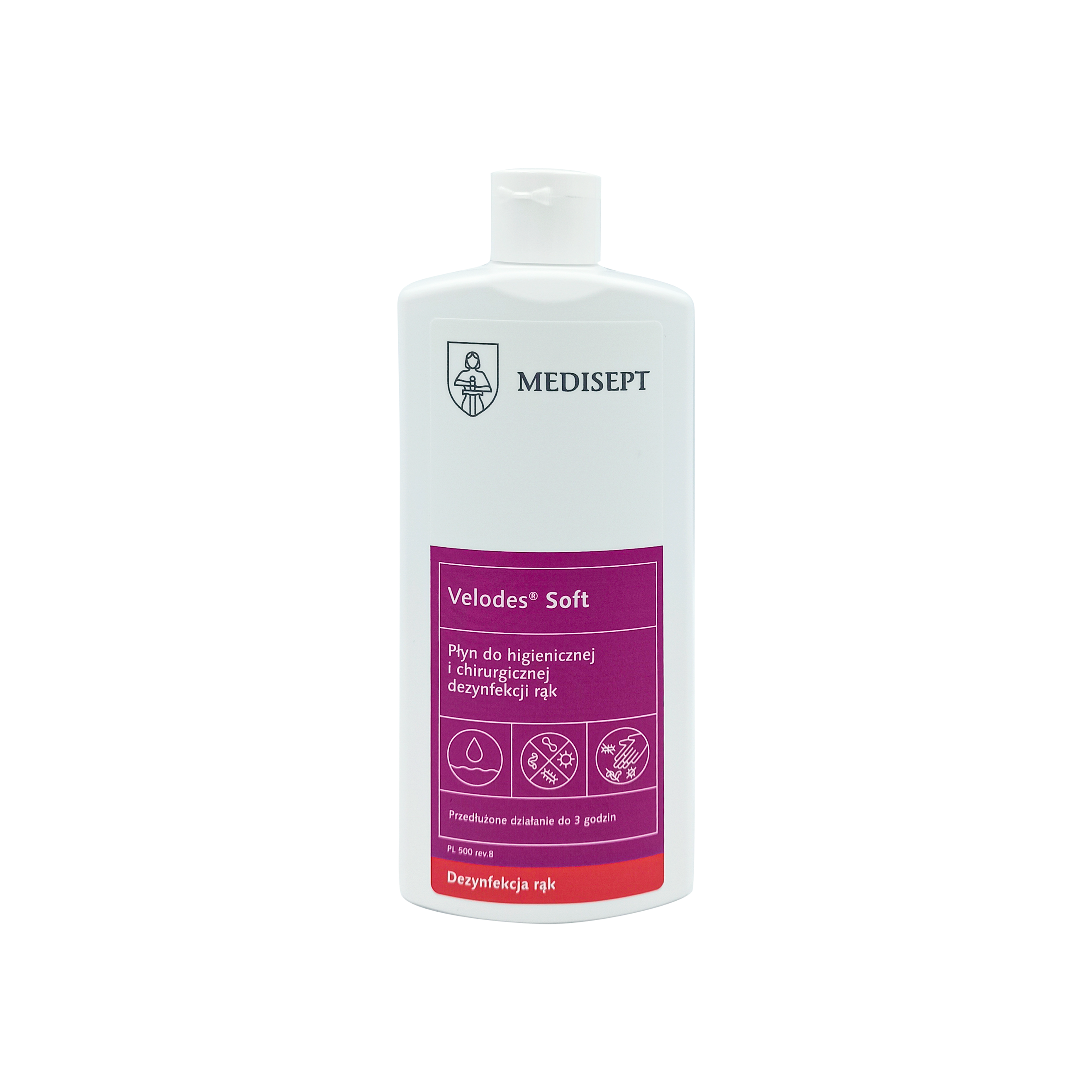 Pohodlné balení: Velodes Soft dezinfekční prostředek na ruce je k dispozici v 500 ml lahvičce, což zajišťuje dlouhodobé používání bez nutnosti častého nákupu nových lahviček.