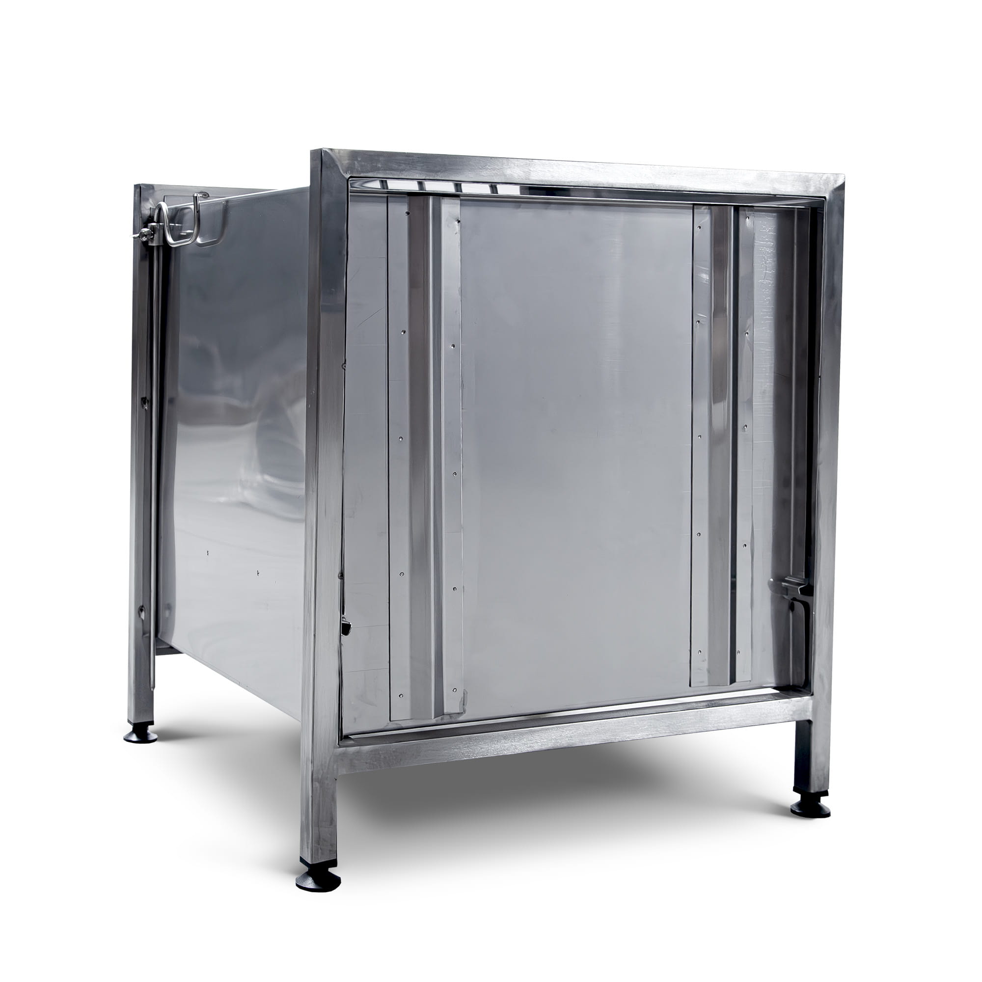 Klec je celá vyrobena z nerezové oceli. Materiál, ze kterého je vyrobena, usnadňuje čistotu, odolnost a pohodlí lékařského týmu Je vybavena pevnou zásuvkou, která stabilizuje čtyřnohého pacienta a usnadňuje lékaři bezpečnou injekci. Volitelně je klec k dispozici s infuzním stojanem, který má funkci nastavení výšky pomocí motýlkového knoflíku.