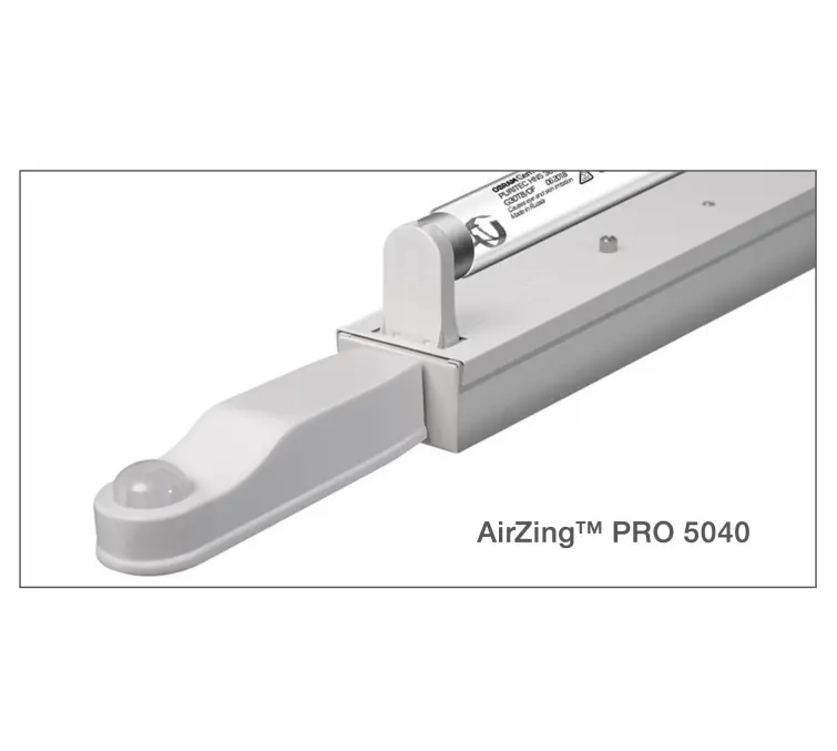 Speciální svítidla AirZingTM PRO jsou vybavena germicidními zářivkami (HNS 36W nebo HNS 30W), které vyzařují UV-C záření o vlnové délce 253,7 nm. Toto záření účinně dezinfikuje vzduch, vodu a povrchy a je zcela pohlceno kyslíkem a ozónem v atmosféře.